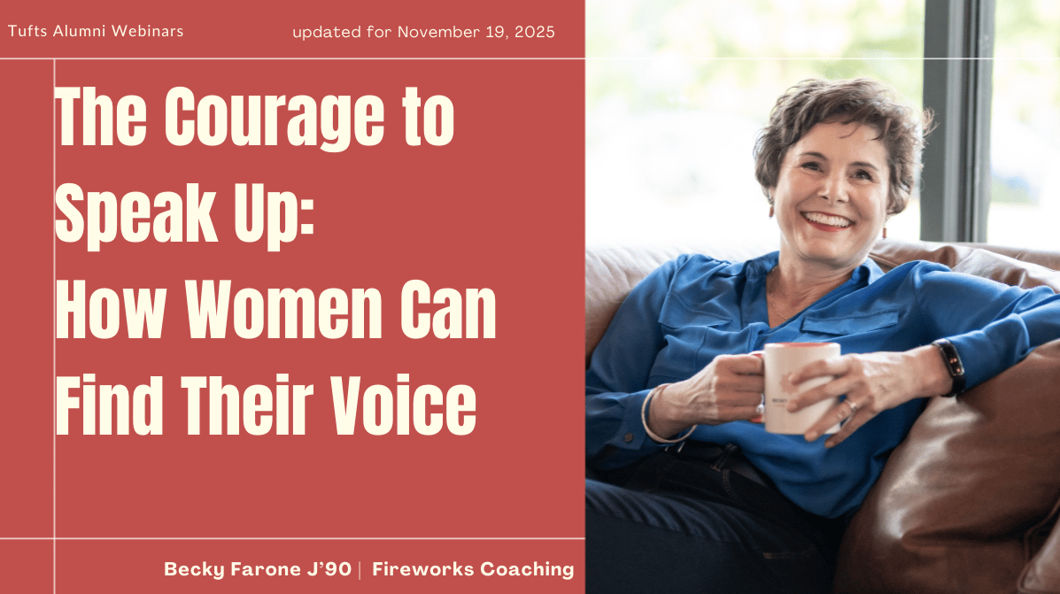 If you missed my recent webinar for Tufts Alumni, The Courage to Speak Up: How Women Can Find Their Voice, here’s the replay. It’s all about understanding the internal barriers that silence us, the social dynamics at play, and the practical strategies women can use to speak with more confidence and clarity. If you’re navigating tough conversations at work—or avoiding them—this will help you reconnect with your truest voice.